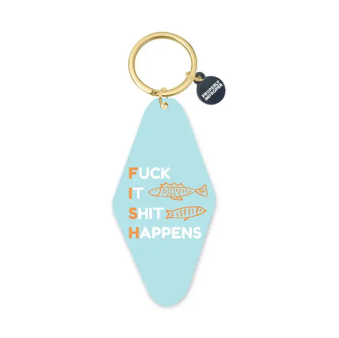 Get real with this refreshingly honest keychain that doesn't hold back. Each word stacks vertically, with the first letters cleverly spelling FISH—a witty hidden message for those in the know. Two playful fish dart across a peaceful baby blue background, adding charm to this boldly candid accessory. Clip it to your keys, bag, or backpack as your daily reminder that life happens and that's totally okay. Perfect for anyone who appreciates humor wrapped in truth.